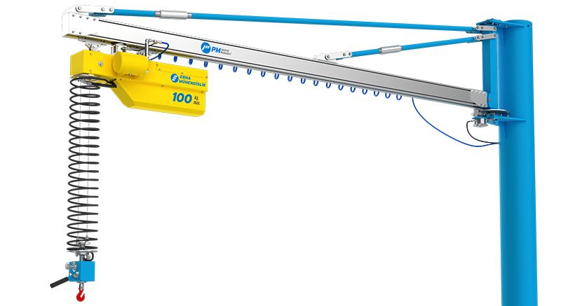 Пневматические манипуляторы Helpful предназначены для перемещения грузов, ориентированных на оператора, в пределах рабочей зоны с минимальными усилиями. Он уравновешивает вес груза, позволяя оператору быстро и безопасно переносить груз. Баланс переносимого груза обеспечивается за счет соединения двух стальных тросов с уравновешивающим устройством. Манипуляторы устанавливаются как на пол, так и на потолок. Манипуляторы производятся со стандартными крючками, но также могут быть изготовлены со специальными держателями, разработанными в соответствии с потребностями. Манипулятор, состоящий из двух рук, имеет всего два тормоза на оси вращения руки. Он работает с воздухом сухой, фильтрованный (40 мкм) и обезжиренный мин. 0,7/0,8 МПа. 180 Макс. грузоподъемность. 6.000 мм Макс. радиус. 1.600 мм Вертикальное движение 68 nl/min использование воздуха.